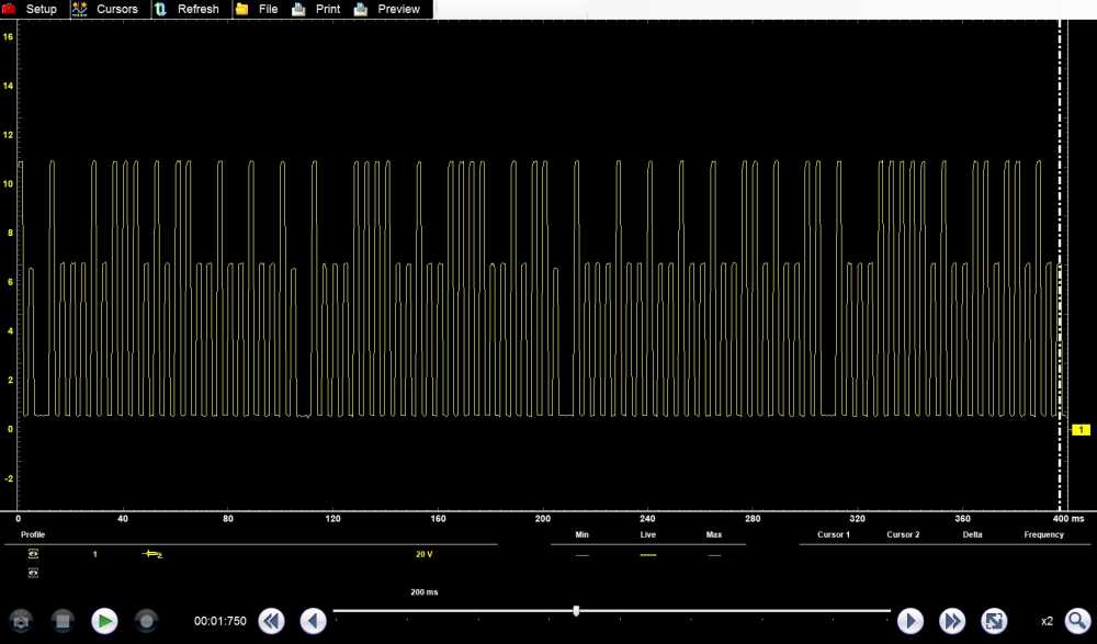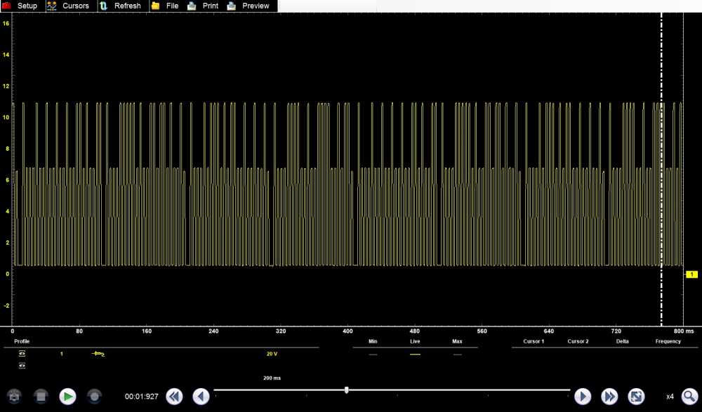 Kind of a cool pattern, once you study it for a bit. :lol: Every 'message' starts out with a 11V (tall) pulse, then three 7V (short) pulses. Then the message proceeds from there.