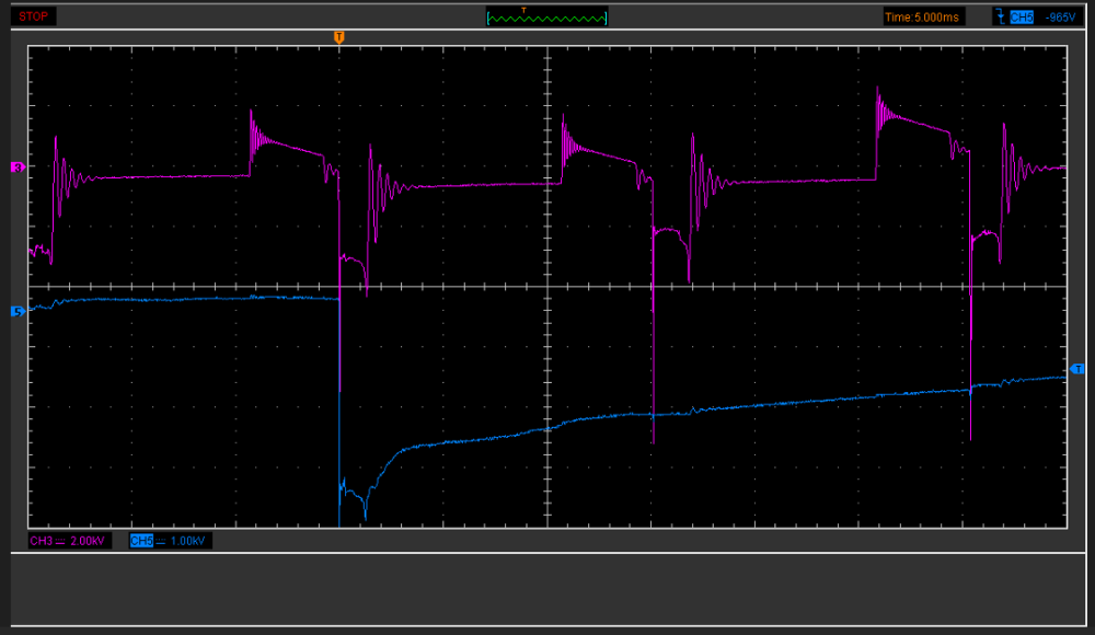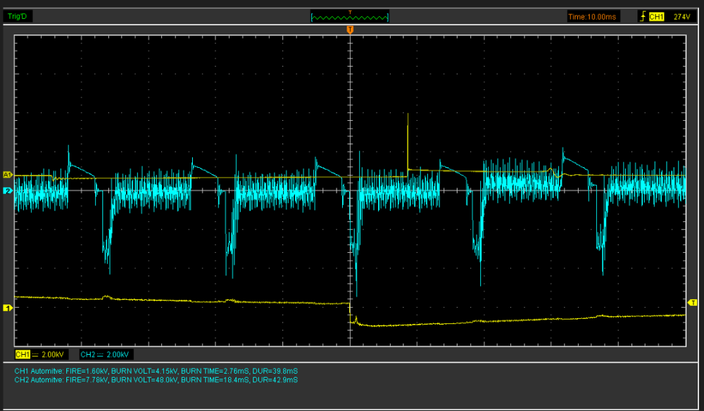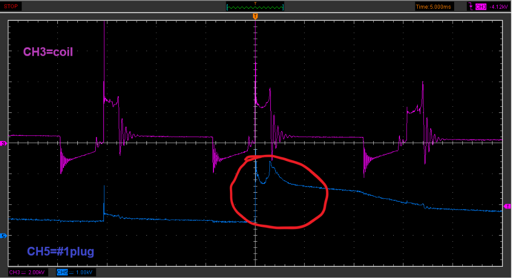 I am afraid this scope is not capable of delivering useful captures on that long a timebase on high frequency signals as ingnition events are
