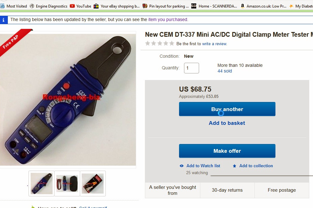 I have been wanting one of these for a while, with the Sterling-Euro exchange rate going down I thought I better hit the buy button. The build quality isn't wonderful but it didn't cost thhe earth and when I did a quick test on a main battery earth cable it showed a within spec 68mA parasitic drain.