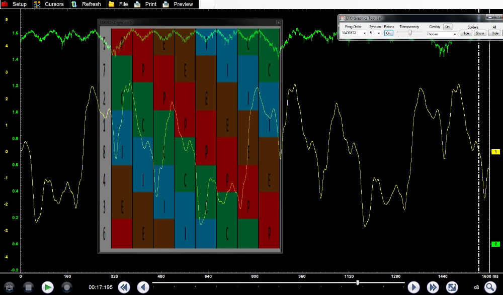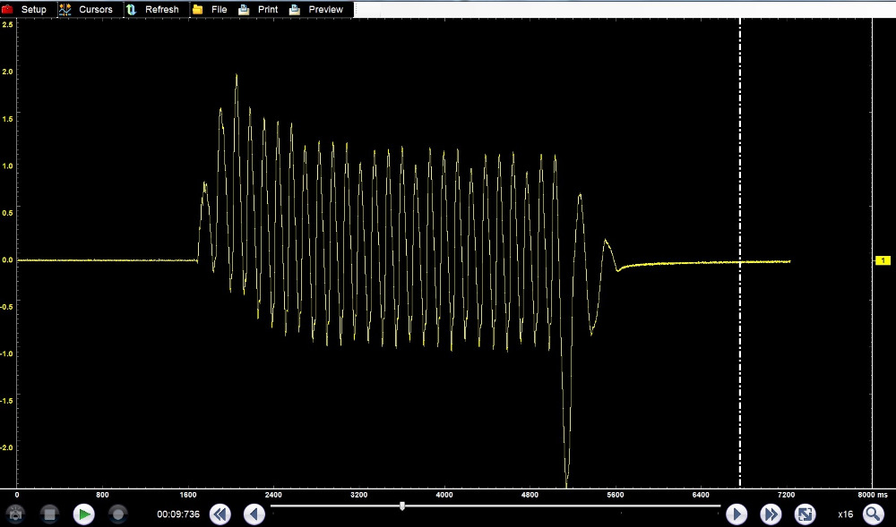 All pulses are even and relatively uniform. This next one is with a loose plug. You can see the variance in the peaks of the pulses.