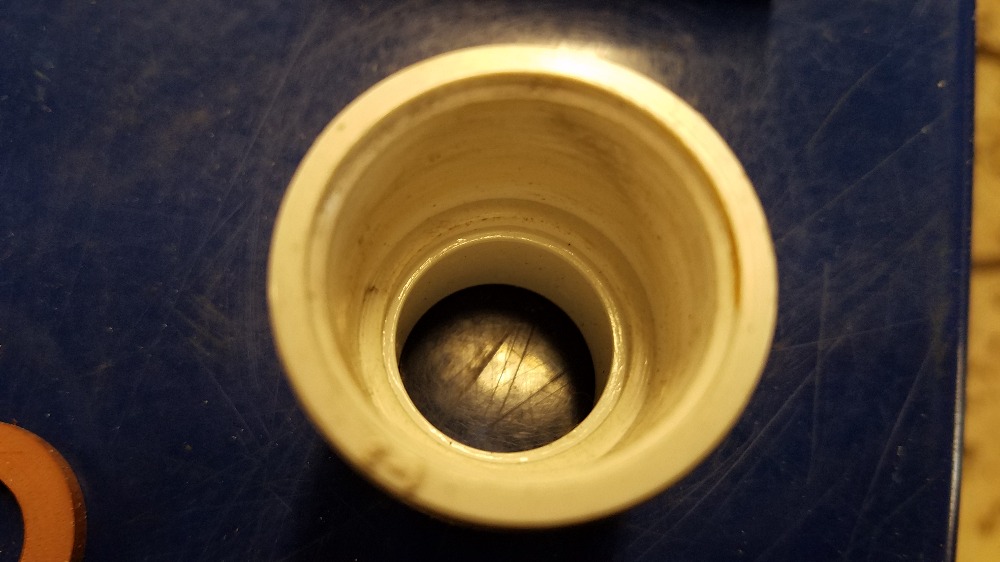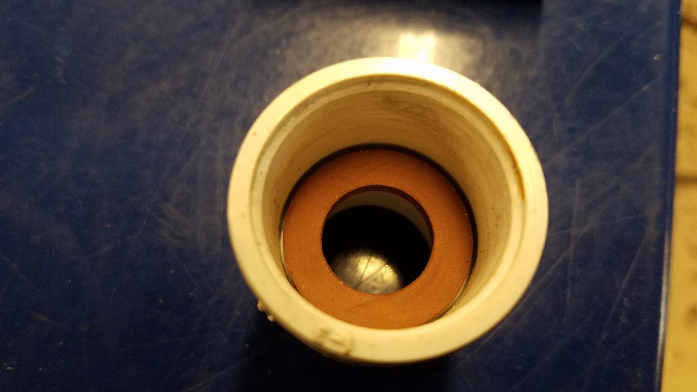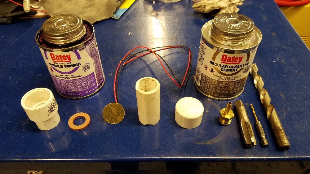Here are all the parts I used. No glue for the disc. I used the step inside a 3/4" coupler and a rubber washer to make a seal. The bottom is open to atmosphere.