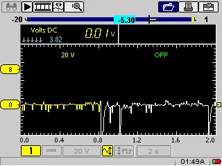 Hello! I'm working with a Snap On Vantage Pro. Has any one experienced the yellow or green trace(as well as the min max numbers) turning white on scope? Its random. I did put the yellow test lead near the coil wire to give you an idea of what i see. I'm