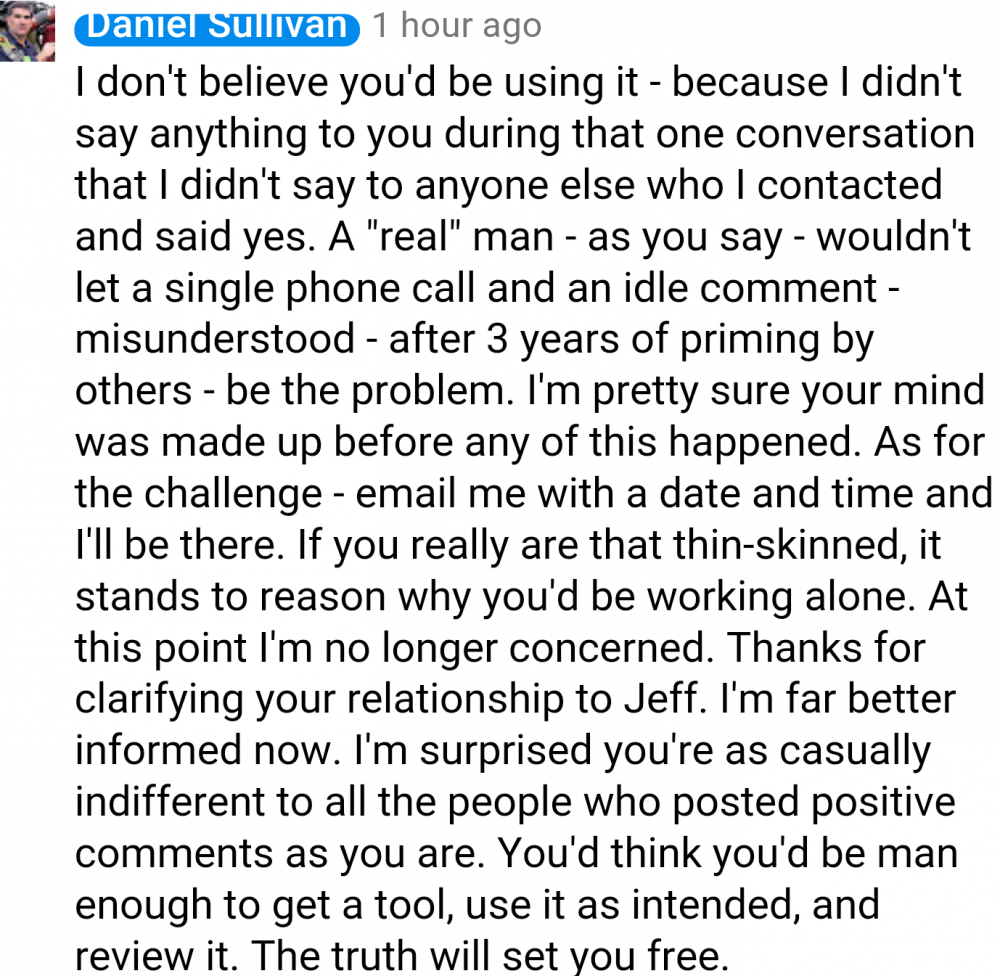 He will not be using me to help him. There are other comments you haven't seen. Maybe I'll post them too. His latest move is to just piss me off so much that I'll shoot a video about him. Guess what? I'm not gonna do it. I will NOT ever use or promote his tool.