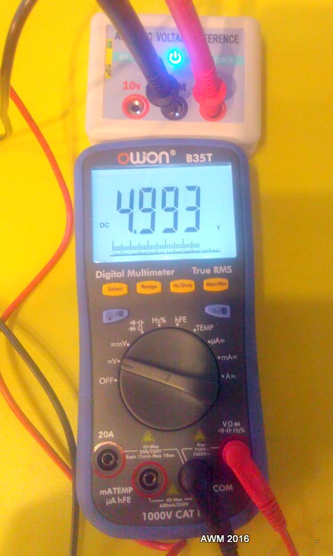 Source is calibrated at 5.00109 volts a meter reading of 4.993 volts is close enough for me.