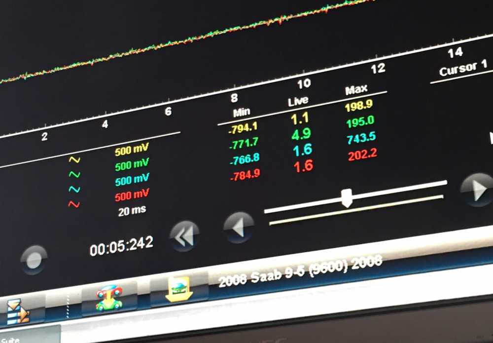 While checking a Saab alternator I noticed the channels on my scope all read different