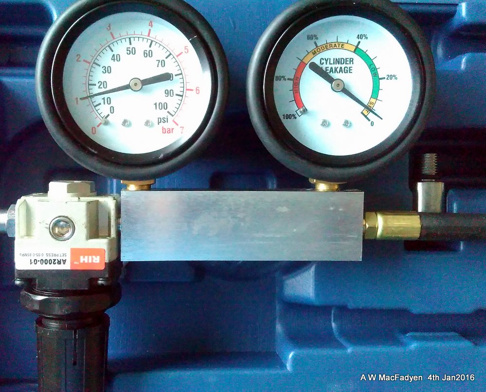 My little compressor generated enough pressure and flow for the test on a known good cylinder but the pump died in the process before I could get a picture or test it on a bad cylinder. I should say the 12v compressor was over 10 years old and was both tiny and the cheapest of the cheap. I am pretty sure one of those 2 cylinder versions advertised for 4x4 use would have been fine One thing I did discover was with the little compressor you really have to be 100% sure the air connections on the supply side are leak free.