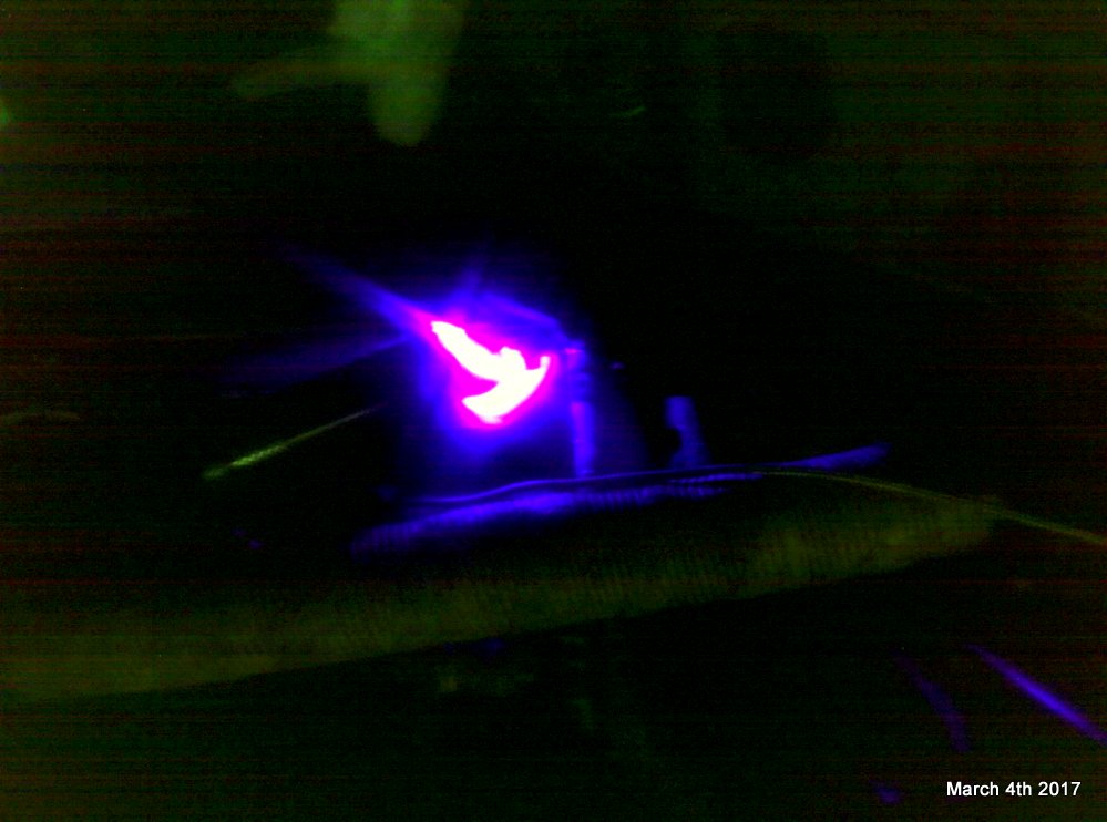 No obvious signs of leakage cold and hot pressure test revealed nothing, vacuum test was okay. Head gasket was suspected as a last test I tried fluorescent UV dye :evil: