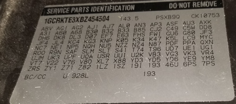 Would you be able to post the RPO sticker for one of the trucks you're working with?