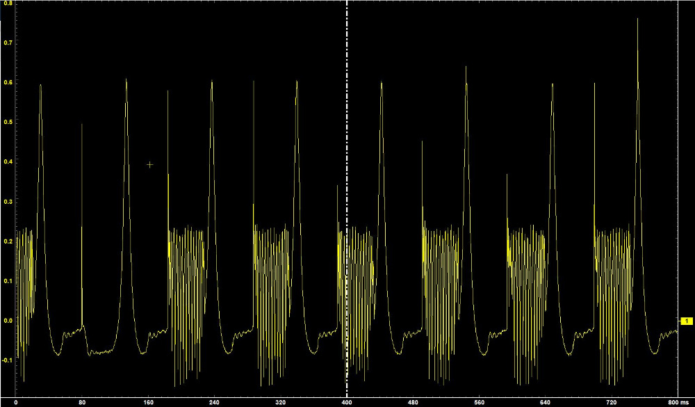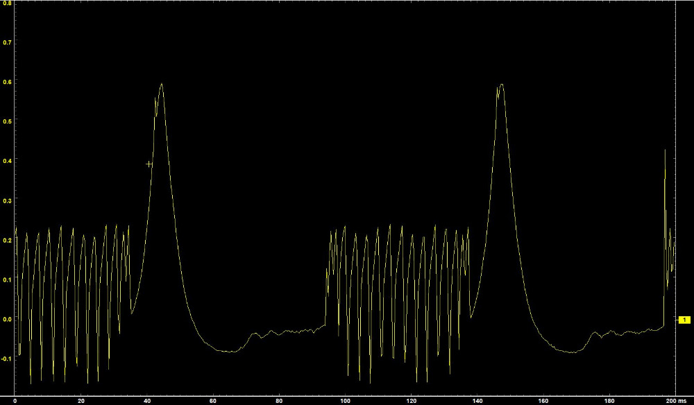 I did, but I forgot to save the waveform, I did see a similar pattern. If I was smart enough I would have tried to look at amplitude but I was in a rush and totally missed the opportunity.