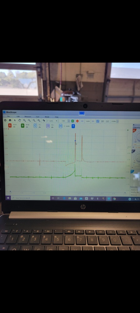 Working on a 95 gmc safari 4.3 liter with an intermittent stalling condition and was wanting feedback on my voltage waveform. When the transister turns on it begins sloping up till the transistor turns off. Any ideas as to why? I know these jumper harnesses usually go bad inside the intake manifold. Is that what im seeing? Any feedback would be appreciated