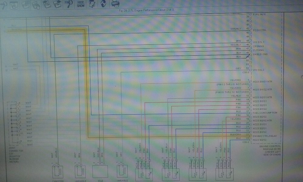 This is for a 2.7, the white wire highlighted yellow makes it to the maf on another page. This is best I can do without wifi for now.