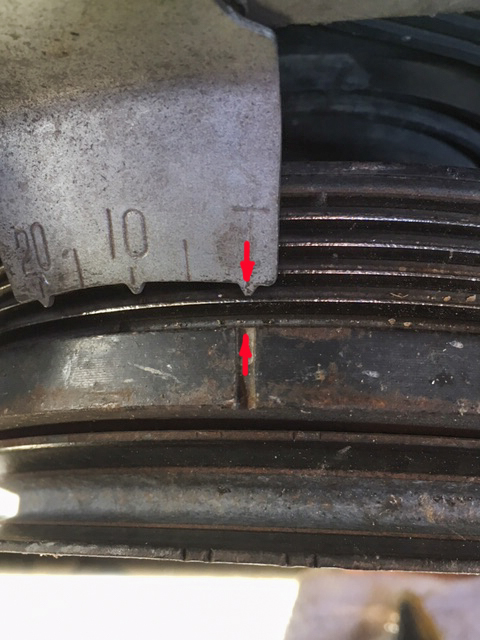 But the notch on crank reluctor wheel was off slightly. I took a picture of it to get a better look and I noticed dark markings where the crankshaft gear used to be lined up in relation to the reluctor, indicating the plate has slipped from position.