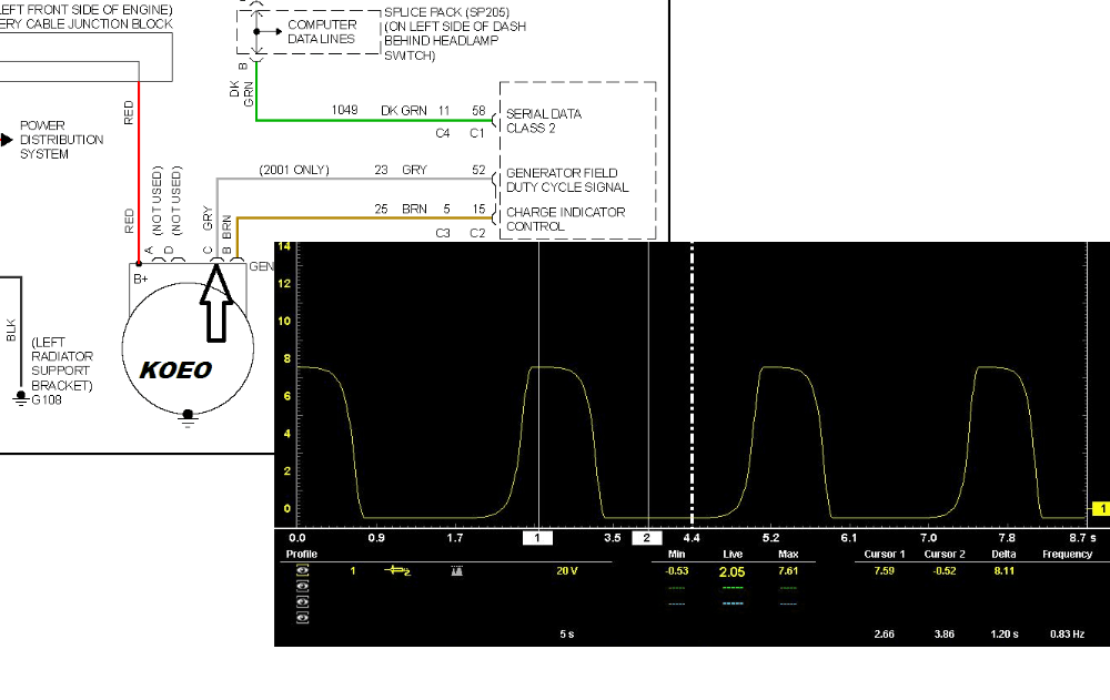 I tested the alternator with the KOEO and heres the capture