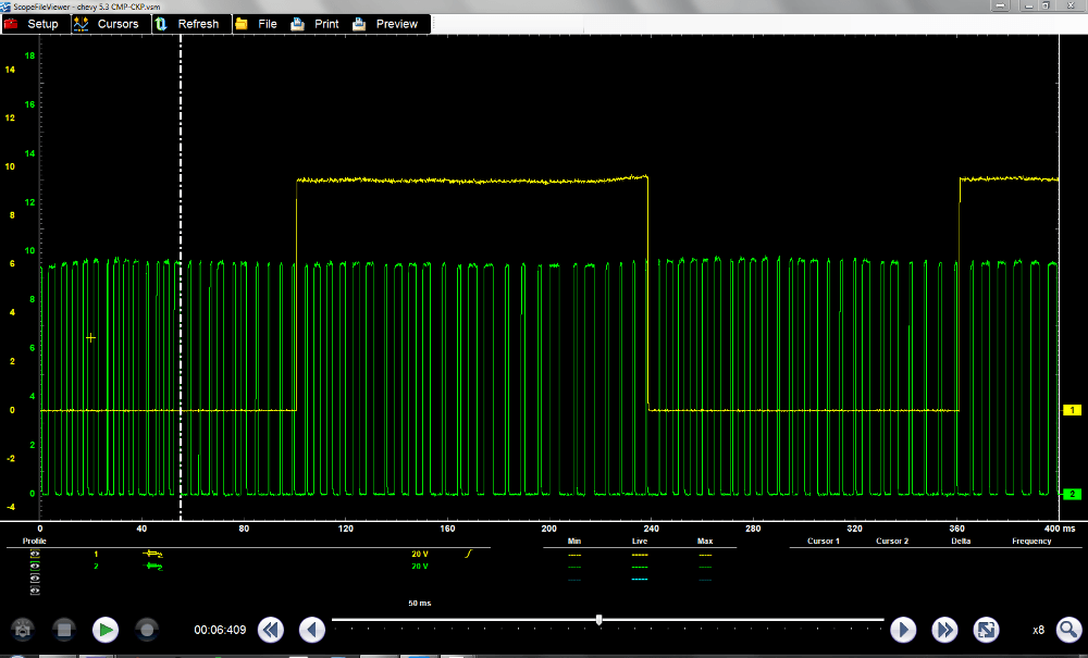I'm working on a '01 Tahoe with the 5.3 The computer is not sending the signal to the coils #5, 7 and 8. I'm not familiar with this 24X crankshaft 1X camshaft relationship.. i'm looking for some information and maybe a known good CRANK/CAM sync waveform..