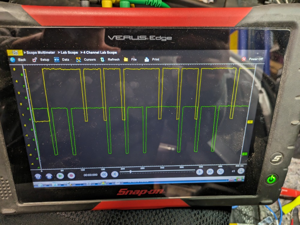 so I have a 2011 Subaru Forester xt in with what a believe is jumped time, but I'm not sure.im still new to scope usage but hoping to get more confident. I've got p0301-p0304 and p0340 CMP sensor code. When I use the scope to get a waveform. It looks off from the service data example I have. Any info/ help would be greatly appreciated.