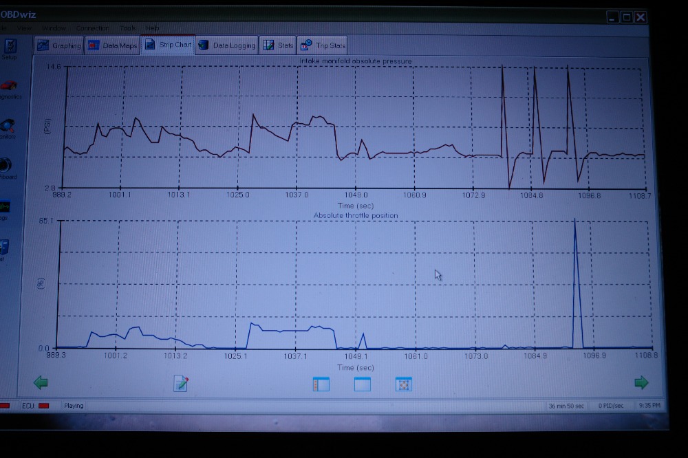 Ben wrote: Wow that graph looks very suspicious at the end your map and maf show 3 throttle snaps but your tps only shows 1 but the 1 that the tps shows the maf barely reported at all this could be a issues with your obd2 adapter lagging what adapter are you using?