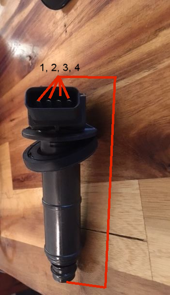 I'm unable to detect any spark. I didn't smell any burn on the coil packs and got similar readings on each one. See coil pic for pin # scheme I use in my readings here.