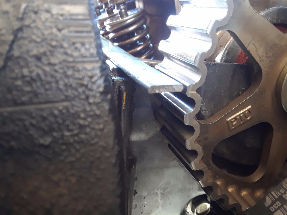 If you still have the upper timing cover off, have another look at the cam sprocket. Instead of using the yellow paint marks, look at the lines cut into the cog wheel on the outer face of the gear.
