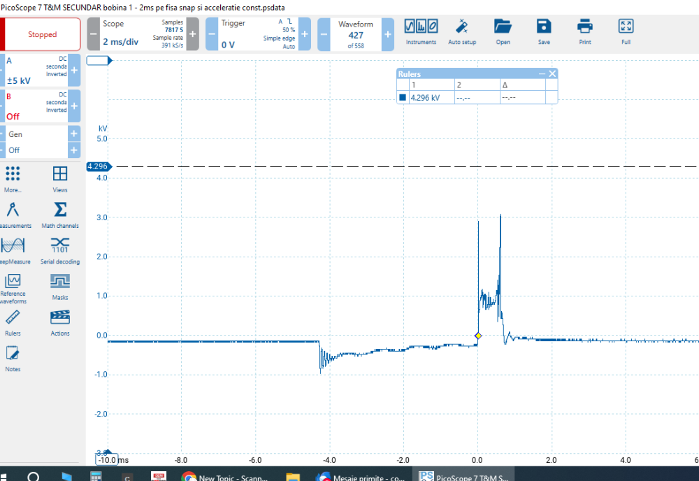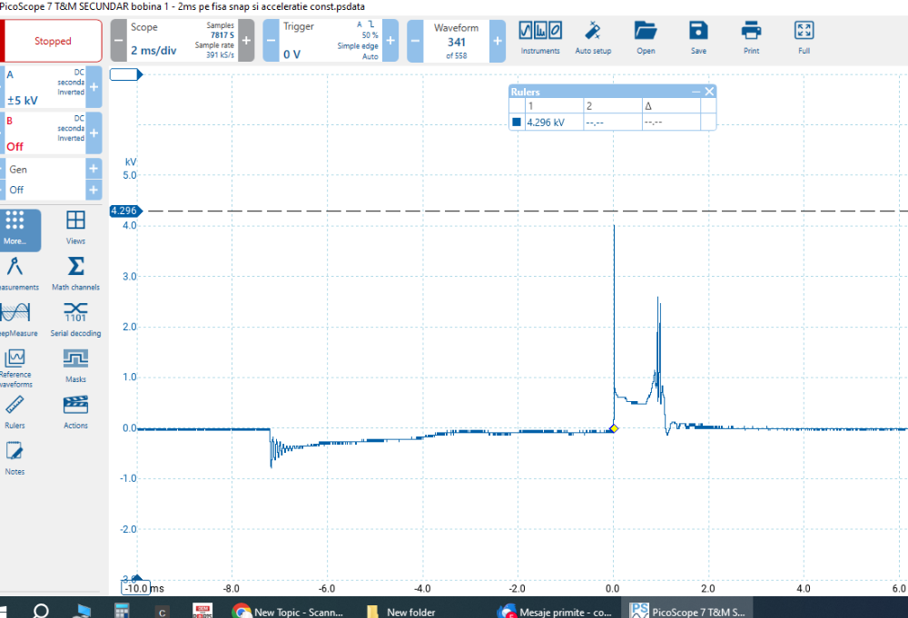 It can't keep idling after 2-3 minutes after cold start, and if running constant speed/rpm (low speed) it sputters. Initially i thought it is an coil problem, but it starts to make sens a bit more as mixture problem. Previous spark plugs were nicely coloured redish as should be. I have attached some secondary waveforms that don't look right to me.