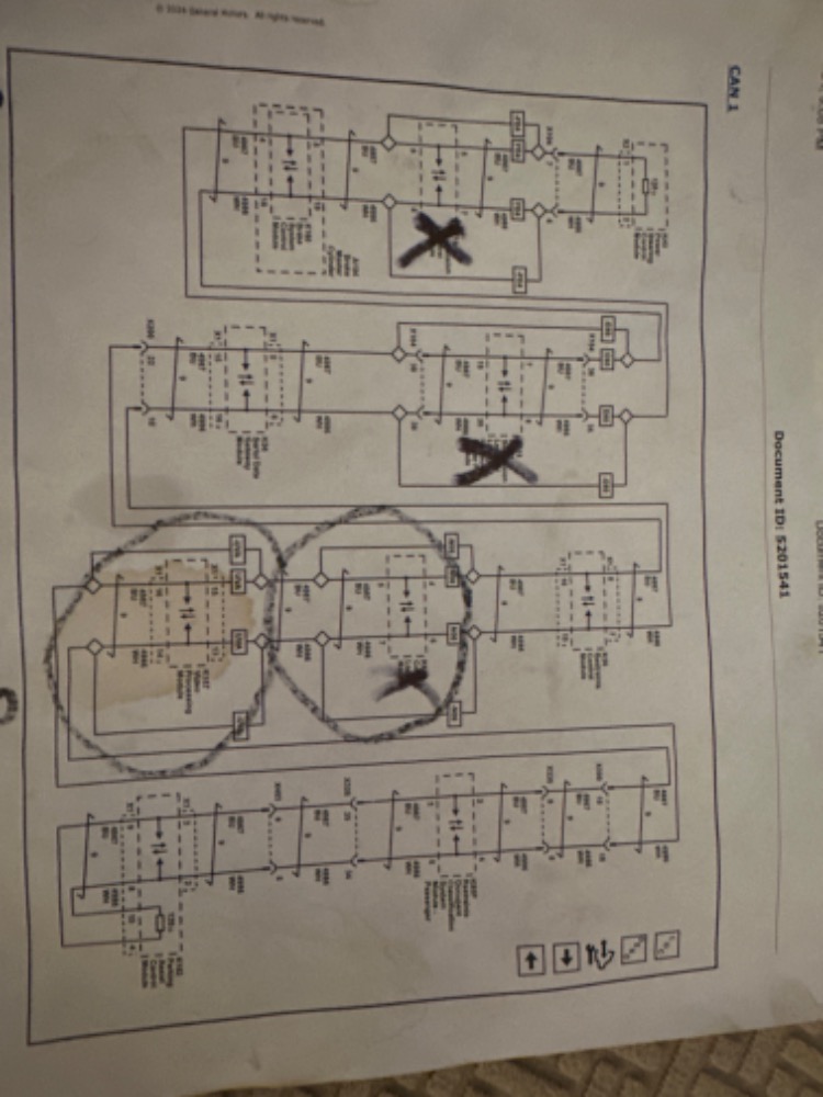 The way I ended up here is I found a video on YouTube from ScannerDanner showing GM CAN bus wiring and saw that the lines are a series parallel showing that the modules don’t have to go in and then out but just basically “leg off” to each module from the main two wires. Am I understanding this correctly? If so, what I described should work correct? I’m gonna add a picture of the CAN 1 diagram I have for this car as well. The “X” is on the modules my car doesn’t have as it was a factory option my car does not have.