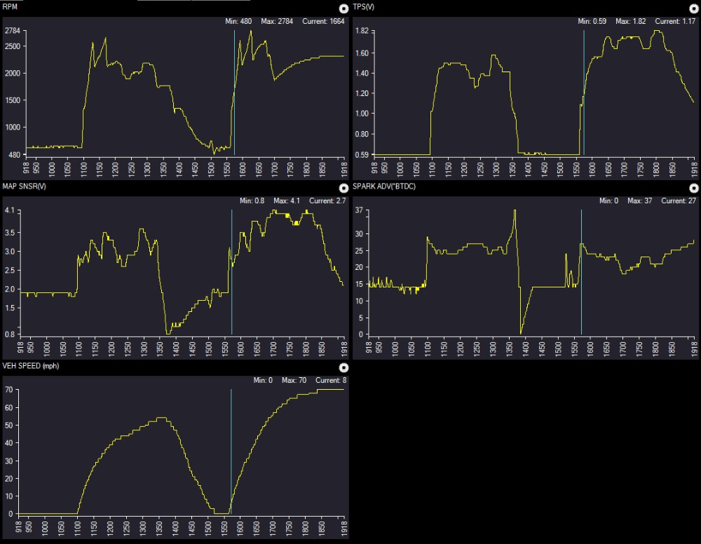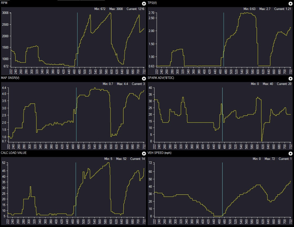 Since the MAP and TPS are the primary load inputs on this engine, they're the ones that the PCM will look at for spark timing. For comparision, I also looked at a 4.7L from a 2000 Grand Cherokee, and it has the same kind of spark advance behavior.