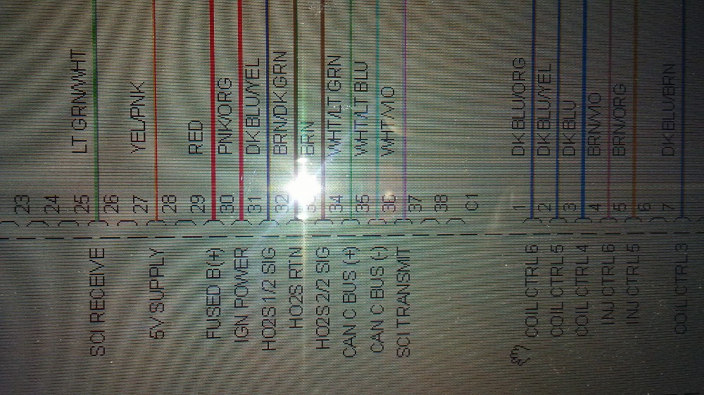 Dk/Blu and pink is the signal pin # 33 at PCM and at 02 sensor it's the bk wire. The brn/dk grn is the return the brn/vio heater power I think and last is blk/lt grn is ground .When I plug the 02 sensor I also get ground on the brn/vio is that normal?