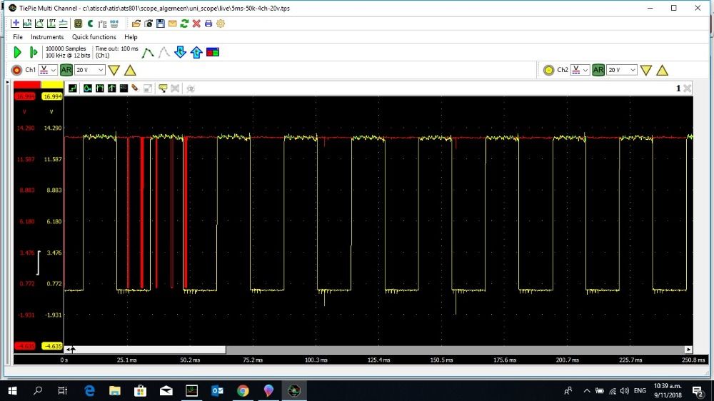 When I connect a breakout box to the diagnostic plug and scope pins 7 and 9 there is a 50% duty cycle 30 ms battery voltage pulse on pin 9. If I try to communicate with the ECU I can see the pulses on pin 7. For now I'm suspecting something is wrong with the ECU.