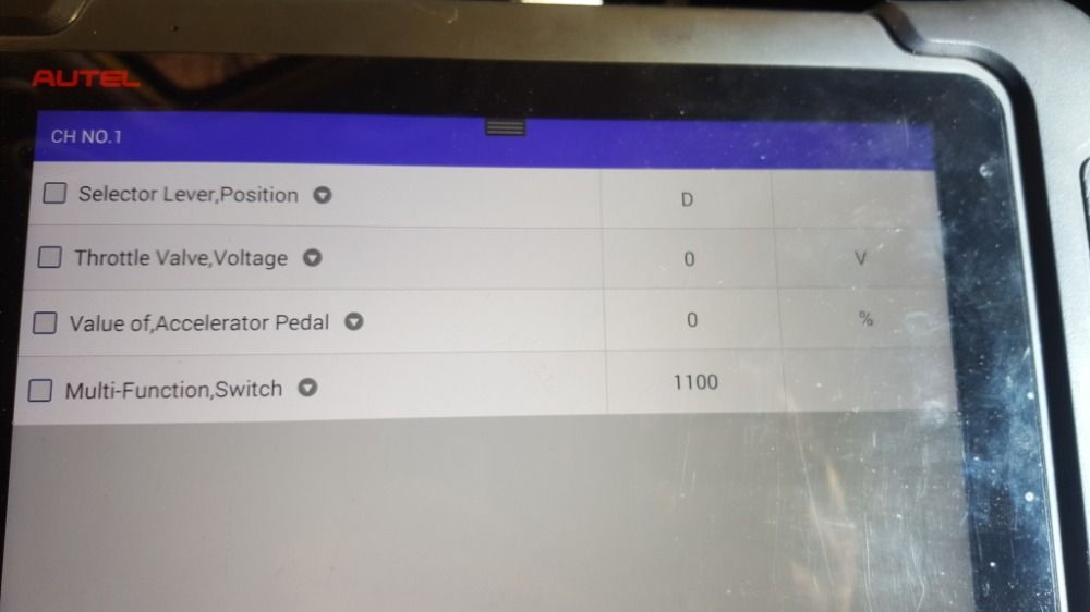 In live data on channel 001 the selector lever always shows as "D" even though the numbers change as I move through the range