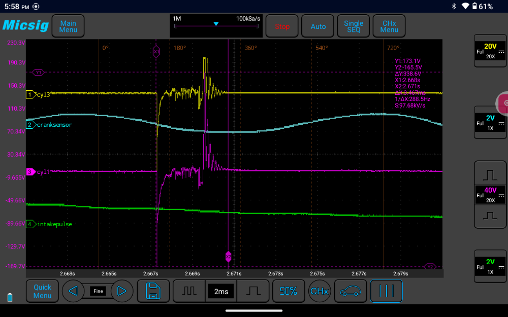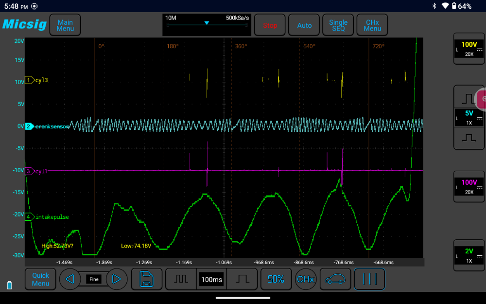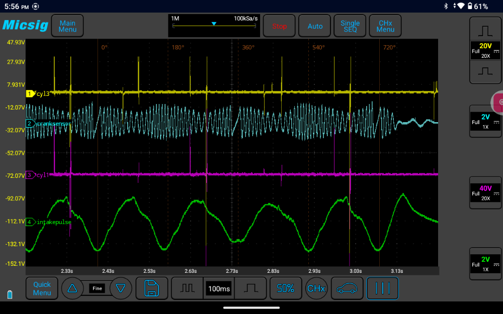 At different times during testing today the engine turned over and sounded perfectly normal except for not firing then other times it sounds like crap like timing or plug wires are all mixed up.. that is evident on one of the combined screenshots (if I get it sorted out and posted notice the color order is way messed up.)