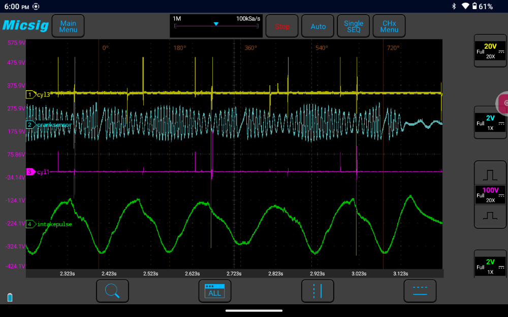 I also only see four compression events in a complete engine cycle, going off the #3 ignition trace and (I think) two crank revolutions.