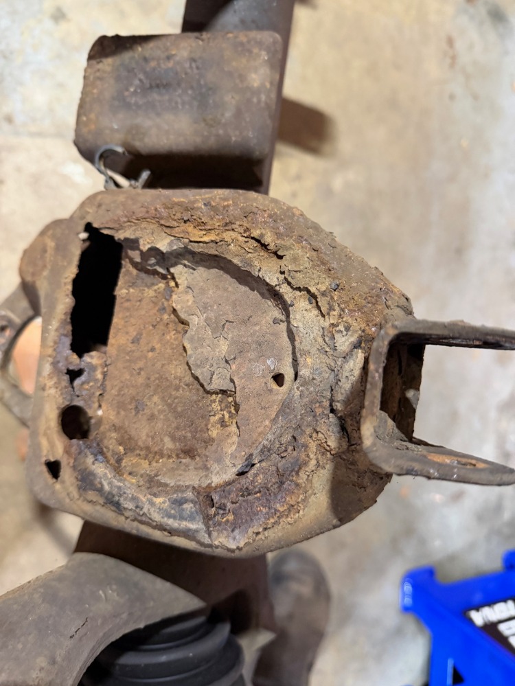 As attached pictures show, drivers side spring perch rust and caved in, and the passenger side also has substantial rust. Fortunately the axle cylinders themselves are solid. SO I guess mt questions are: