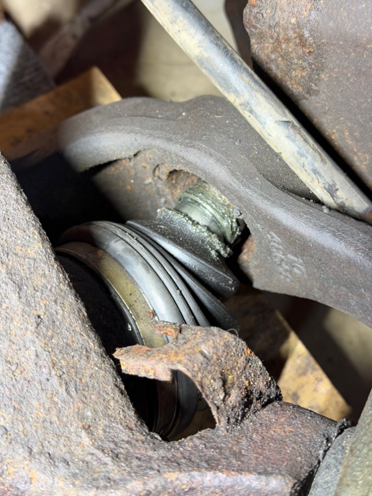 2) Axle shaft boot on drivers side has pulled loose. Apparently clamp let go. I figure it is probably best to go ahead and replace axle shafts and axle seals assuming I reuse this axle assembly.