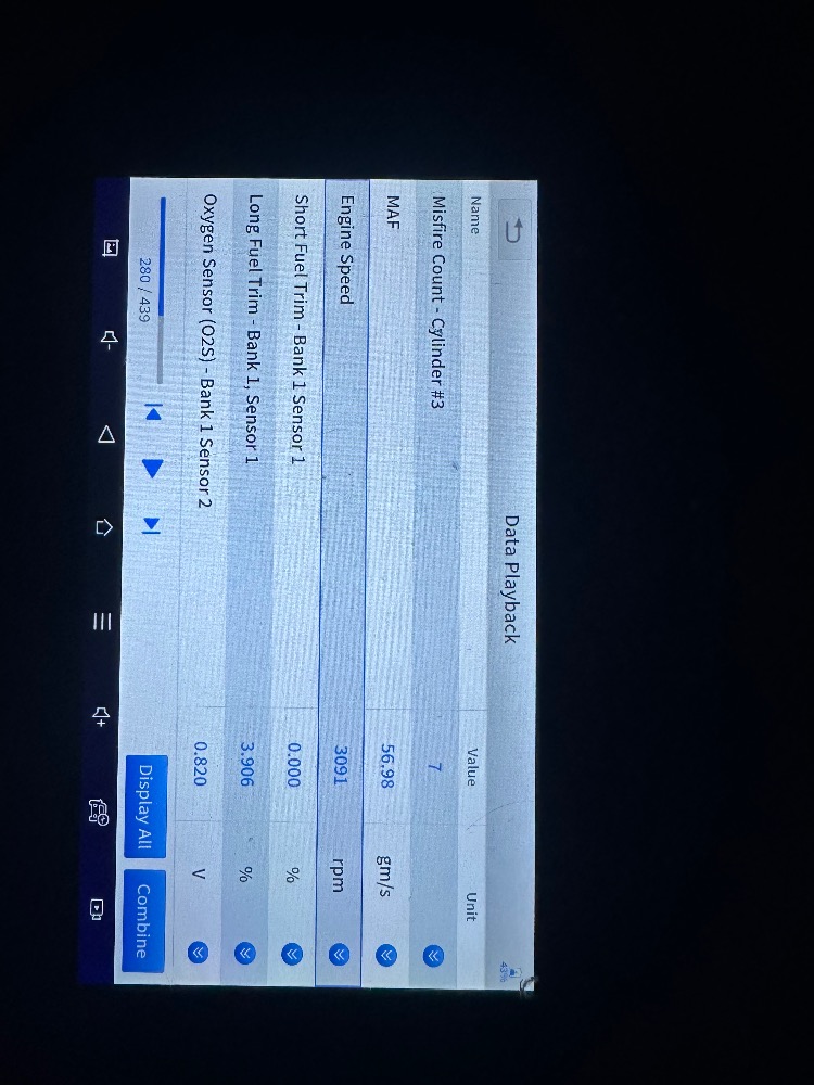 I will admit fuel trims and O2 readings are my weakness. However, I'll dive into those tonight as well and try to provide some data. When the misfire begins, there is a shaking/vibration felt immediately while the CEL flashes. I can't say I disagree or agree with a single cylinder miss, how would that differ from multiple cylinders missing? I have mainly been keeping my eye on the misfire counter PIDs. The only one that reports the miss is #3 so that's where I've been focusing my attention!