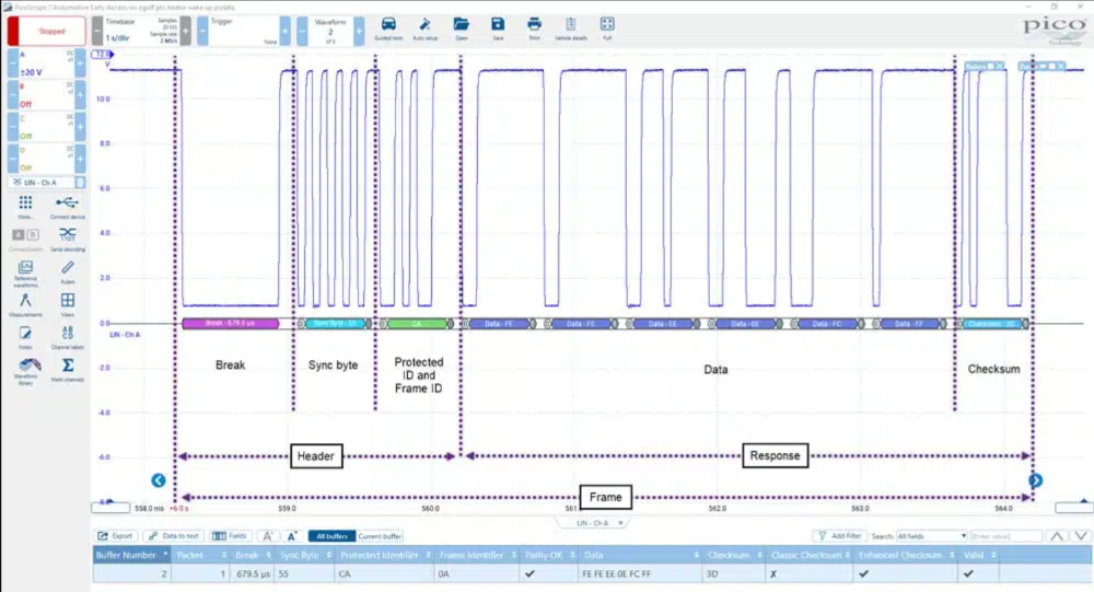 Since TIS doesn’t give an example waveform of what I should be seeing on the LIN line from the generator, I was hoping someone on this forum might be able to explain what I’m seeing on the scope.