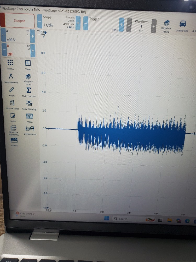 looked into alternator, there is one wire that goes from alt to ecu, TIS says with ign on should have 12V, i have 12V unplugged with it plugged in i get 7.5V, hooked up pico, i see it s pulsed, TIS never said it was pulsed, had 2015 camry same engine, same result, 12v unplugged, 7.5 V plugged but never hooked pico to known good vehicle.