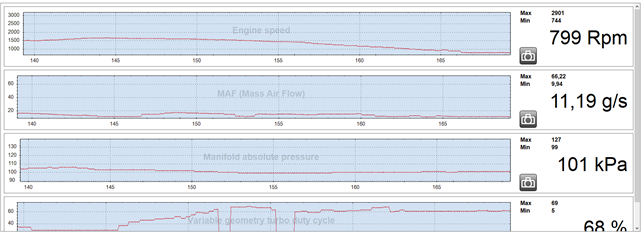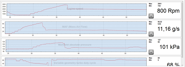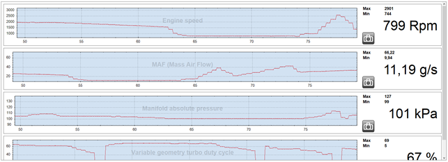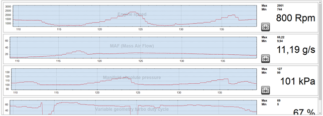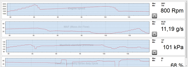 The car is very slow and it is very clear than it is lacking power. I have recorded some graphs while i were driving the car where the boost pressure is very low i have attached these.