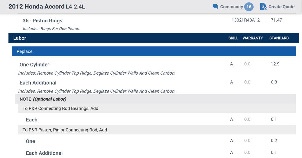 I sure as hell wouldn't do piston rings for 6.2 hrs. :lol: Cylinder head labor in Mitchell is 11.0 hrs by itself. Oil pan is 2.3 hrs. Add some time for the pistons and rings, and you're closer to 15.0 hrs.