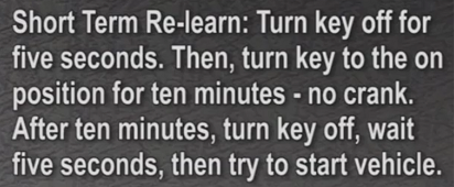 5. Repeat steps 1 through 4 two more times for a total of 3 cycles/30 minutes (the vehicle is now ready to relearn the Passlock Sensor Data Code and/or passwords on the next ignition switch transition from OFF to CRANK).