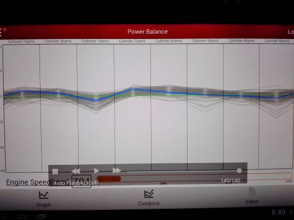 Unfortunately, the vehicle is still misfiring. The same cylinders were misfiring (Cyl 5, 7, 8 and sometimes 4). I placed an pulse sensor in the tailpipe to verify the power balance test accuracy. I found that the power balance test was reporting misfiring cylinders accurately. I checked fuel pressure and even did an injector balance test. Fuel pressure is within spec and injectors measured the same.