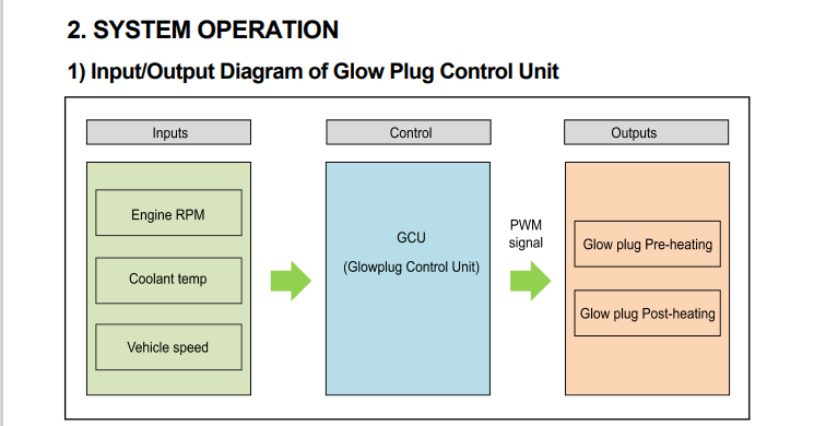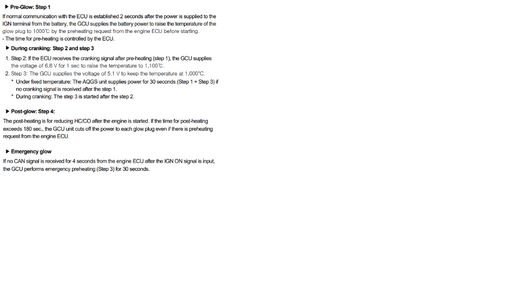 It has a glow plug controller unit (CGU) which is able to comunicate with ECU through CAN protocol. According to description and operation in service manual, they both share information (vehicle speed, coolant temp and engine RPM (see CGU system operation file) to set glow plug voltage and time in three different stages (preheating, cranking and postheating). CGU "knows" when to preheat glow plugs by an ignition signal (see CGU steps file) with a huge amount or current (20 amps) for 2 seconds and then about 10 amps average (PWM) for about 30 seconds.
