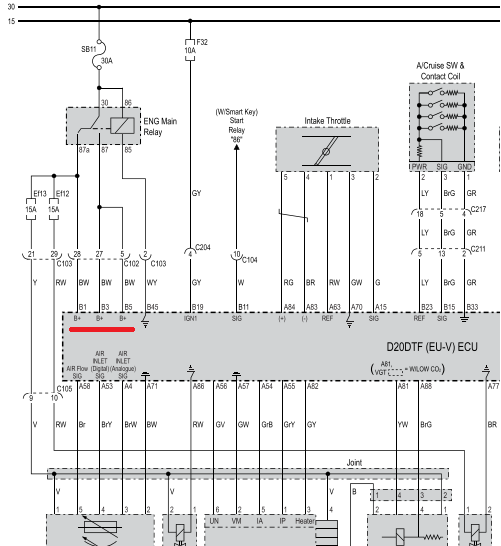 Hi Guafa. I have been chasing a GCU power supply issue on a Korando. In Australia it is impossible to get wiring diagrams for it. Your snippets of the diagram helped me tremendously. Thanks