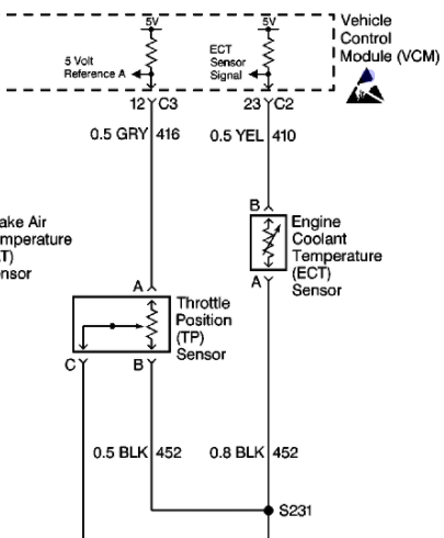A reading of 1.4-1.5V on pin C suggests a possible high resistance or poor contact problem between the TPS connector and the PCM. We'll need to do a few more checks to be sure.