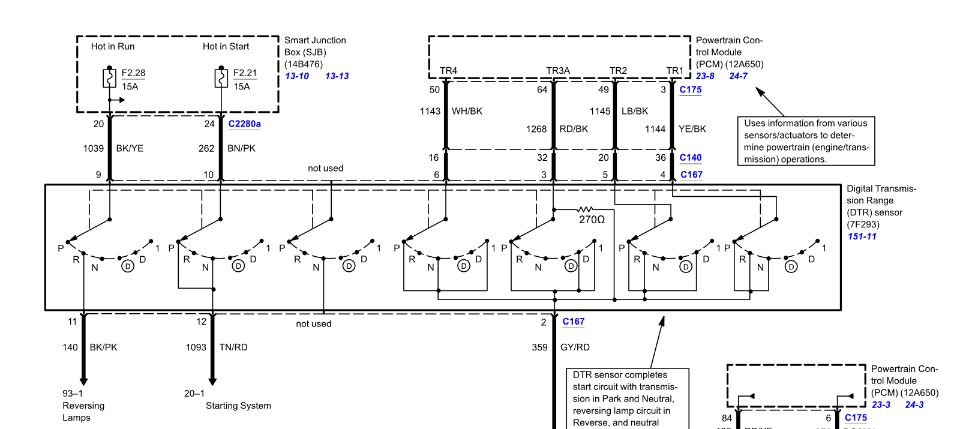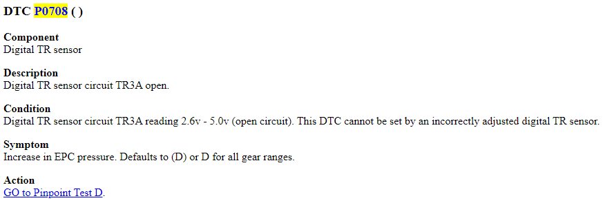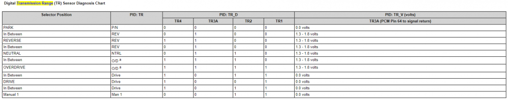 So, according to that, this code has specifically to do with the TR3A circuit. I attached the diagram. I also attached a Transmission Range sensor diagnostic chart that spells out what TR3A should read in each shifter position.