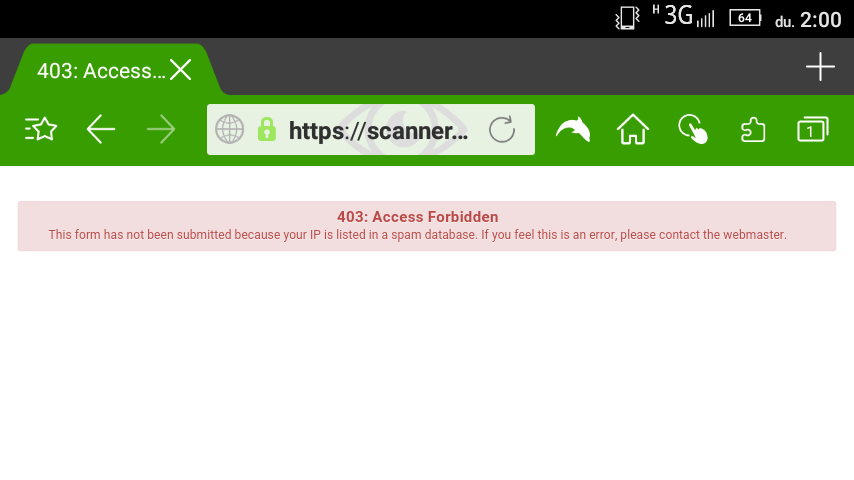 Please email us at support@scannerdanner.com for any issues with the website. Basically all I need is your public IP address. This can be found by going to google.com and typing in “what is my ip”. Then send us back the result. Well get your IP cleared. Just email us with it.