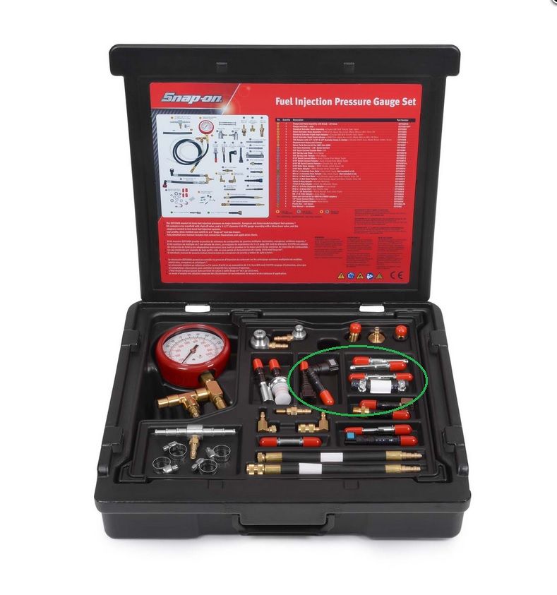 What snap on fuel injection adapter do I need to use on a 2004 grand Cherokee with the 4.0. The fuel rail doesn't have a shrader valve on it so I have too tee in to the fuel inlet.