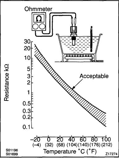 Here's a chart I that I found in SI. According to it, you should always have continuity. 30K Ω, at -4°F. dropping to 0.1K Ω (100 Ω), at 212°F.But, on a good two terminal switch, with the two leads from the DVOM connected to the two terminals on the switch sitting in boiling temperature water, the switch should close and get continuity, correct?