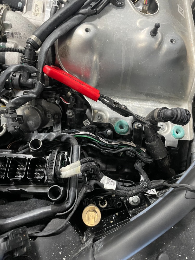 The hope of bench testing is being able to use a paddle probe and check the secondary pattern. When these coils are removed you can hold it to the side of the assembly and achieve a reading. This has been verified by using a secondary extension wire between coil and plug. Take the vehicle currently being repaired for example, 2021 bmw 750. The coolant bottle must be removed to reach coils, no coolant can be spilled because it can damage injectors and or ignition coils which are directly under the bottle. Extreme care must be taken to ensure none is leaked. Pictures attached. While it is agreed that the suggested tool is great for identifying bad coils, alternate testing procedures are being sought due to coil removal being labor intensive.