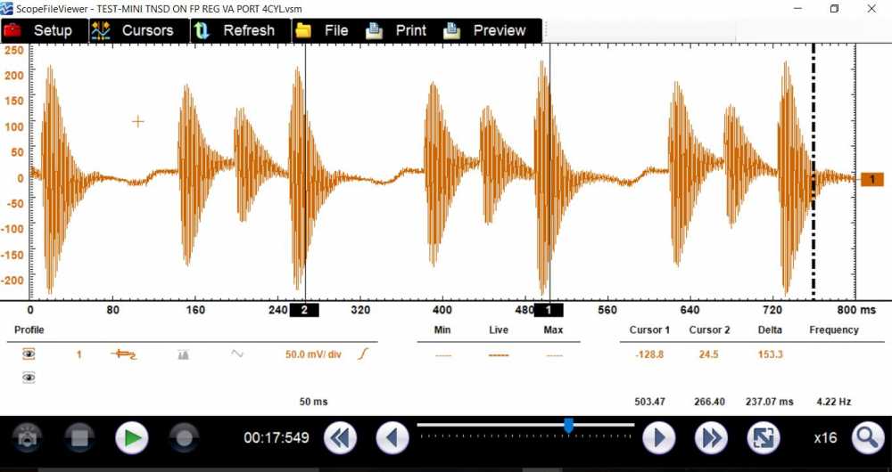 A few things, that test that I showed is only valuable when you have a pressure regulator with a vacuum hose on top of it. As far as scope settings I don't remember but I believe that I used the scope set to AC couple. I think it's in the video but I don't have the link offhand and I don't remember which channel it's on sorry