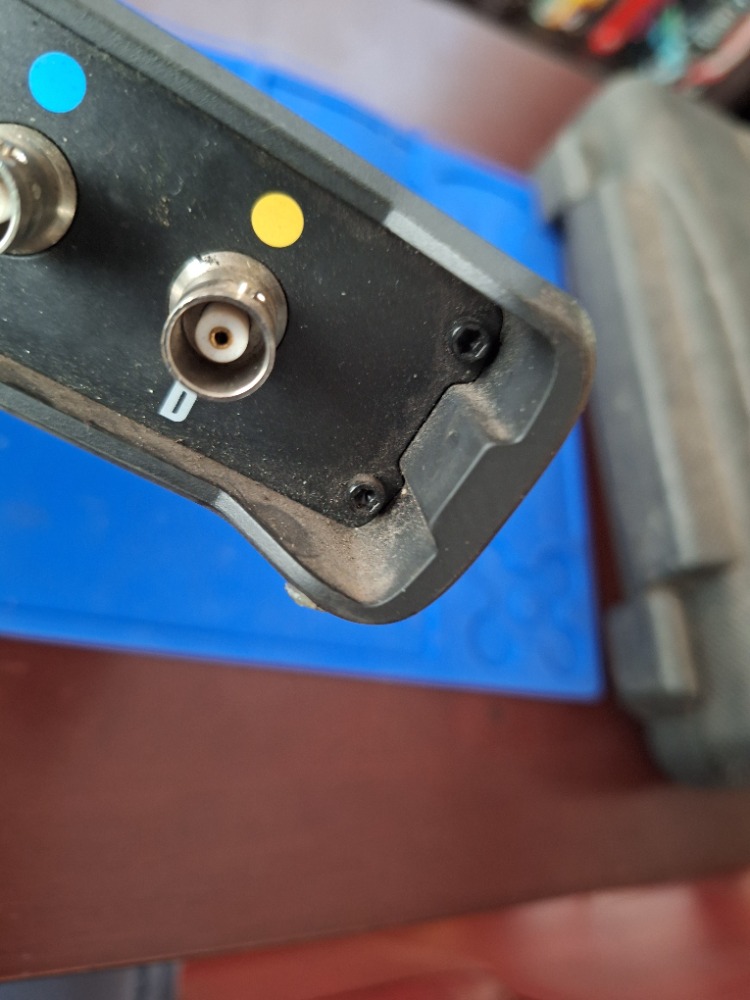 For reference, I'll be calling the end of the VCMI with the hanging hook as the top. The scope/BNC end will be the bottom. All the exterior work will be done at the top. Start with these four recessed 2.5mm screws: