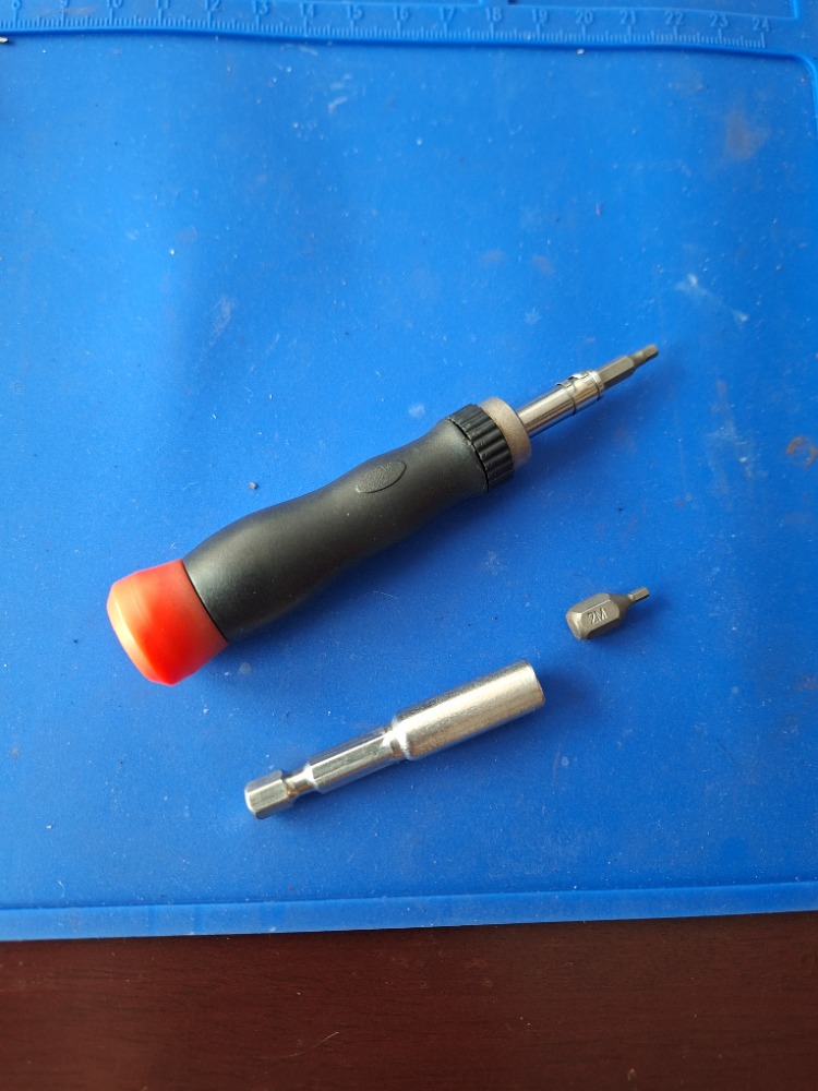 So let's get started. First, tools. You'll need a 2.5mm and 2.0mm hex socket, plus a pocket screwdriver for general prying purposes. A precision screwdriver bit set is ideal. Standard hex bits can be made to work, but won't fit well and might cause you to strip something.